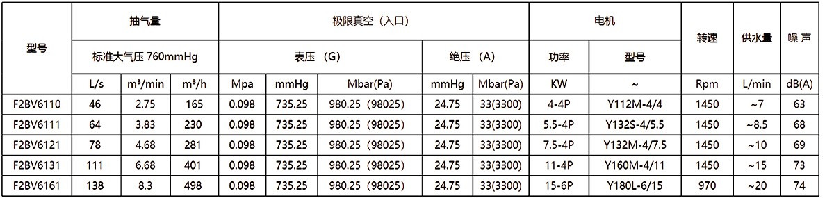 2.上列性能基于進氣溫度20℃,進水溫度15℃,排氣壓力1013hpa的條件,被吸入氣體為飽和空氣。(飽和空氣是指在對應(yīng)吸入狀態(tài)下,其相對濕度為100%的濕空氣。)